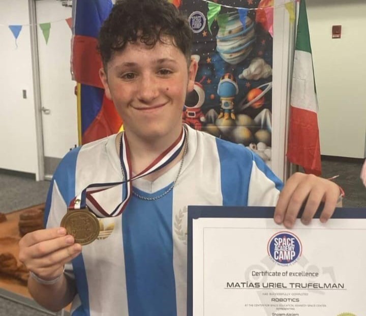 Matías Trufelman, alumno de la Escuela Secundaria Scholem Aleijem, obtuvo el primer puesto en una competencia internacional de robótica vinculada al programa Space Academy Camp.