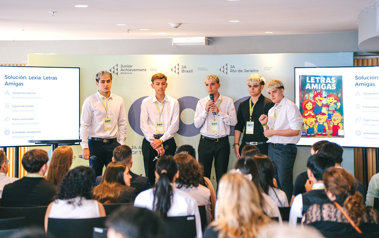 Junior Achievement Américas, realizada en 2025 en Río de Janeiro. Lexia desarrolló un cuaderno didáctico orientado al acompañamiento de personas con dislexia, mientras que Refugio Patagónico llevó una propuesta que combinó producción local, identidad cultural y comunicación audiovisual desde Bariloche hacia una instancia internacional.